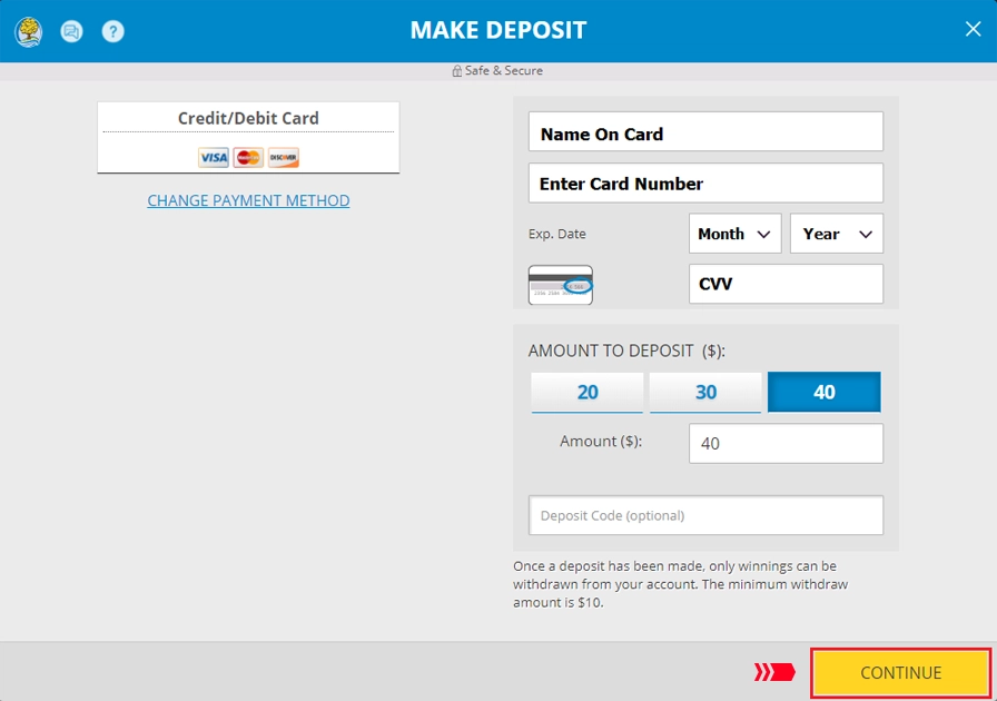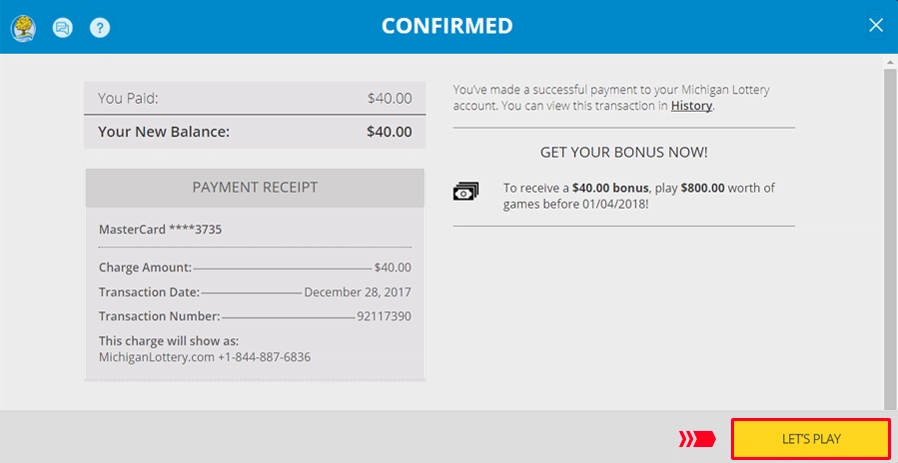 You can fund your online account using debit cards, online banking (ACH), PayPal, or the Michigan Lottery Play+ card. Credit cards are not accepted, and there’s a minimum deposit of $10.